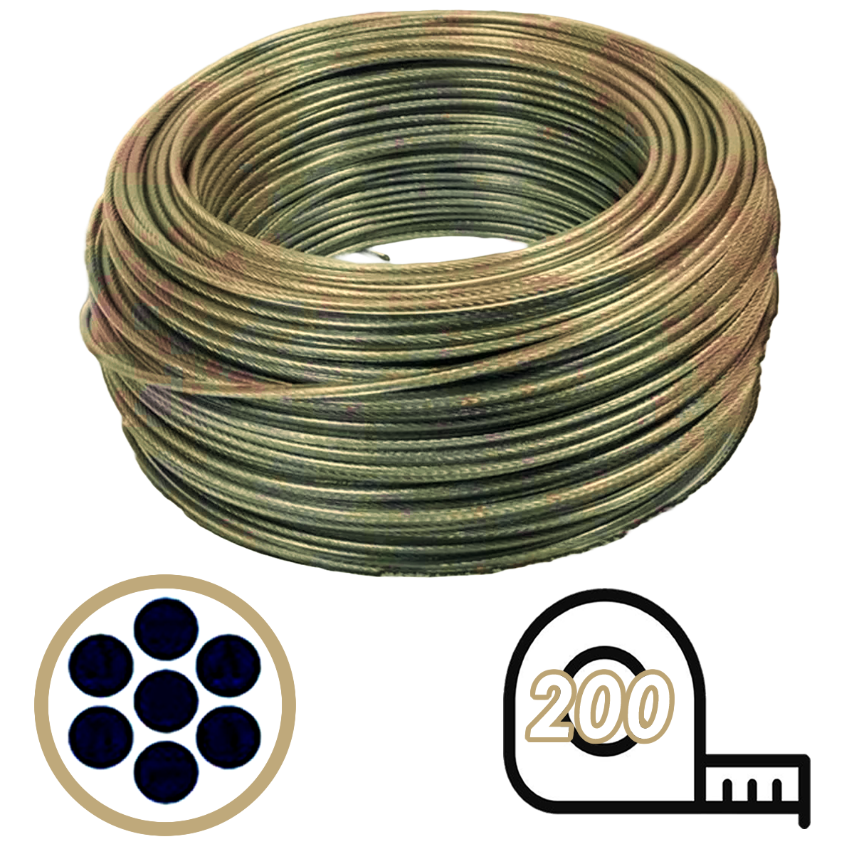 Cable de Acero Revestido en PVC Dorado – 3 mm x 200 mts