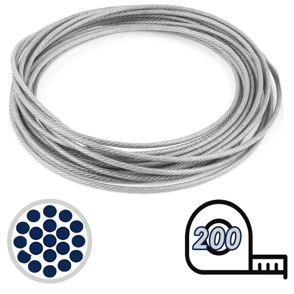 Cable de Acero Revestido en PVC Cristal – 4 mm x 200 mts