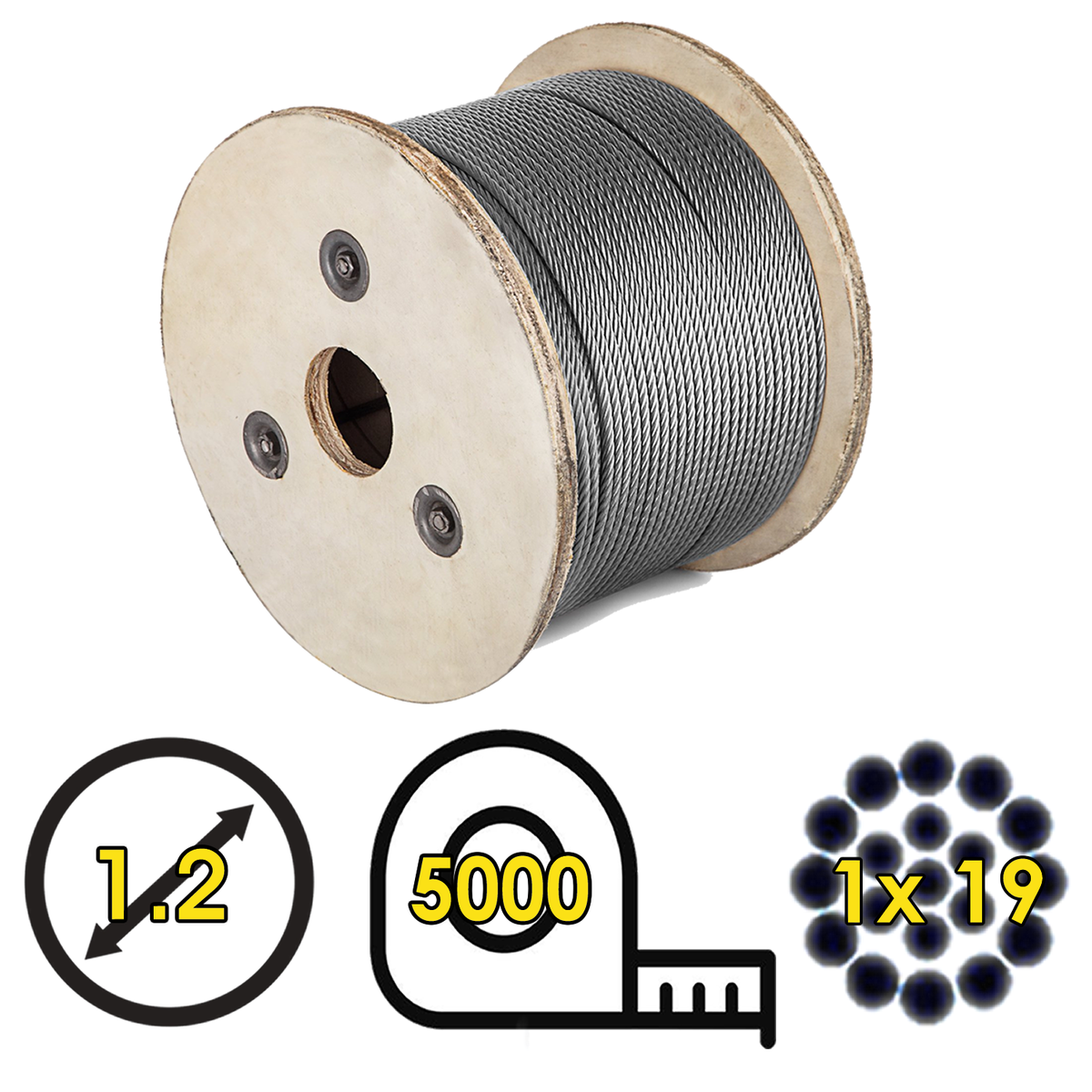 1x19: 19 filamentos, más flexible y resistente a la fatiga.