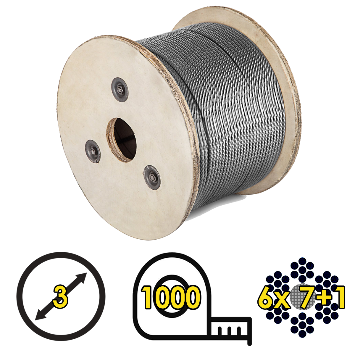 Cable de Acero Galvanizado Rígido 6x7+1 con Alma Textil – 3mm x 1000m