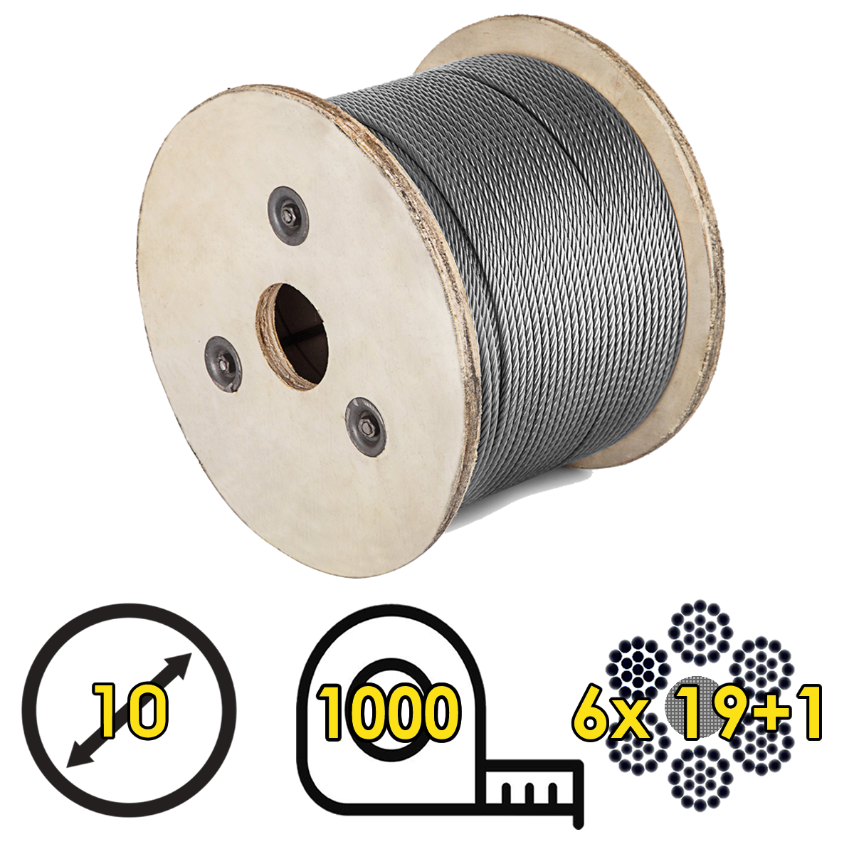 Cable de Acero Galvanizado 10mm – 6x19+1 con Alma Textil | Bobina de 1000 m