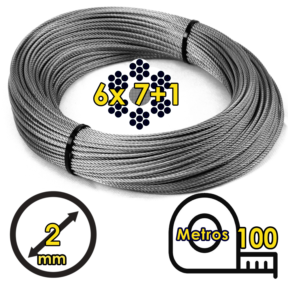 Cable de Acero Galvanizado Rígido 6x7+1 2mm – Rollo de 100 Metros