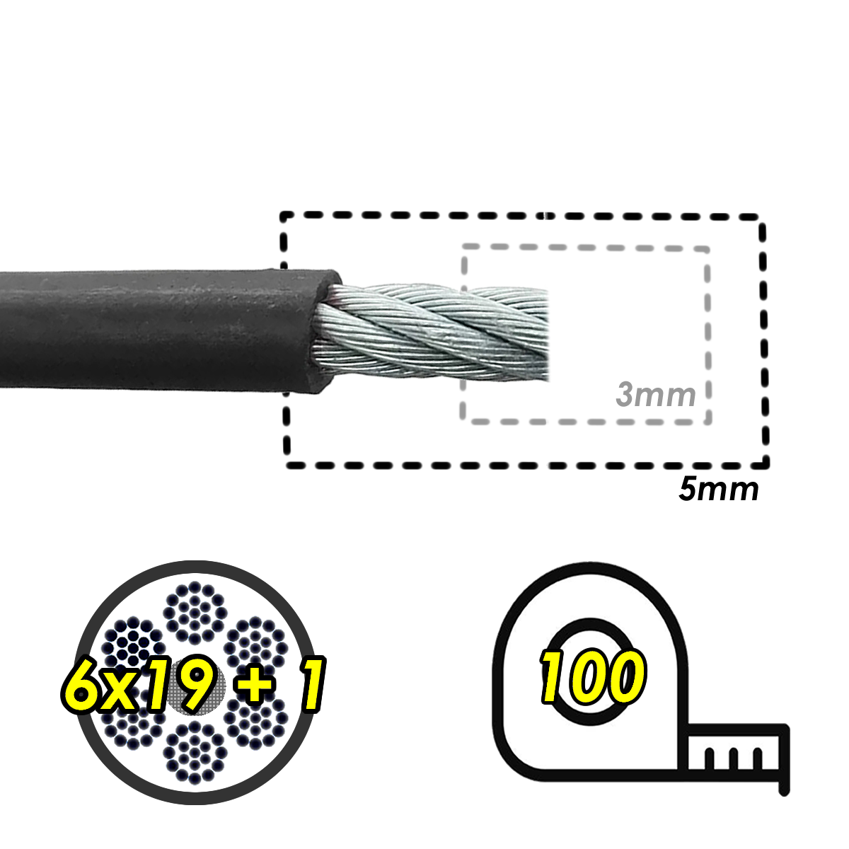 Ideal para equipos de musculación y poleas, este cable combina resistencia, durabilidad y seguridad.